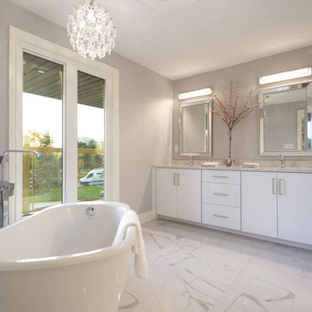 Inside, the bathroom is completely renovated, offering a fresh, modern look with high-quality fixtures, elegant tiling, and a soothing color palette. This space is designed for comfort and luxury, transforming daily routines into a spa-like experience.